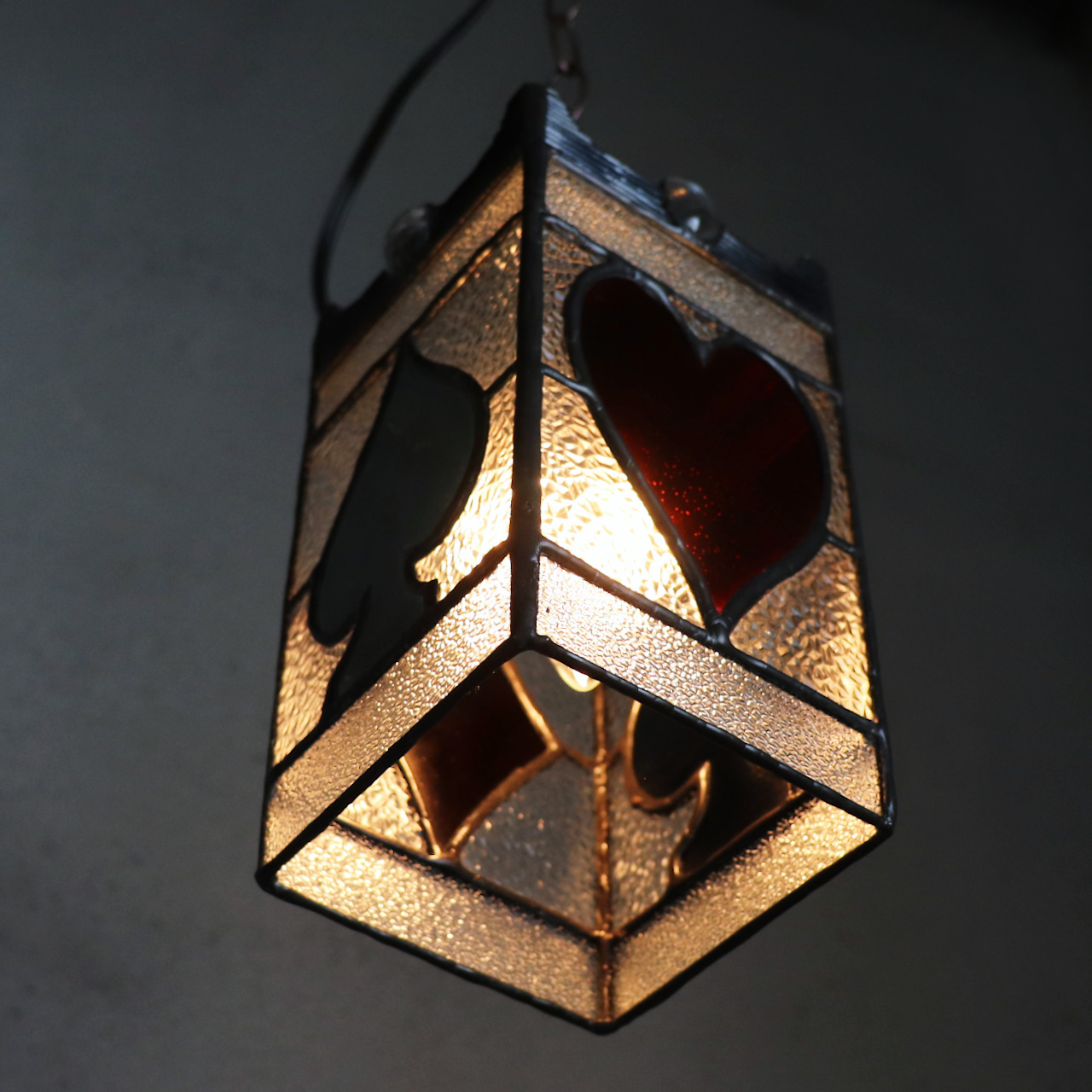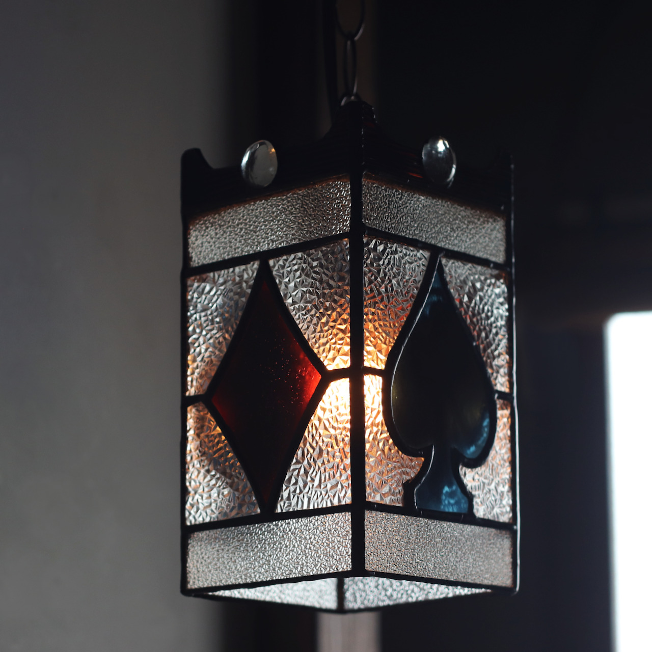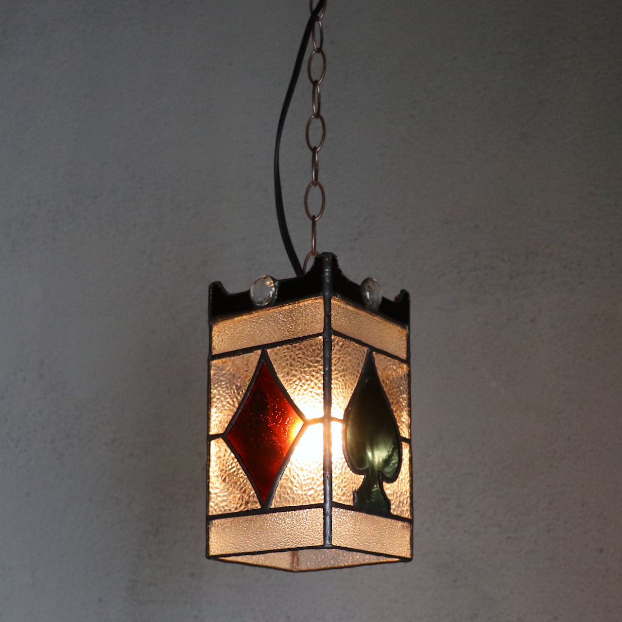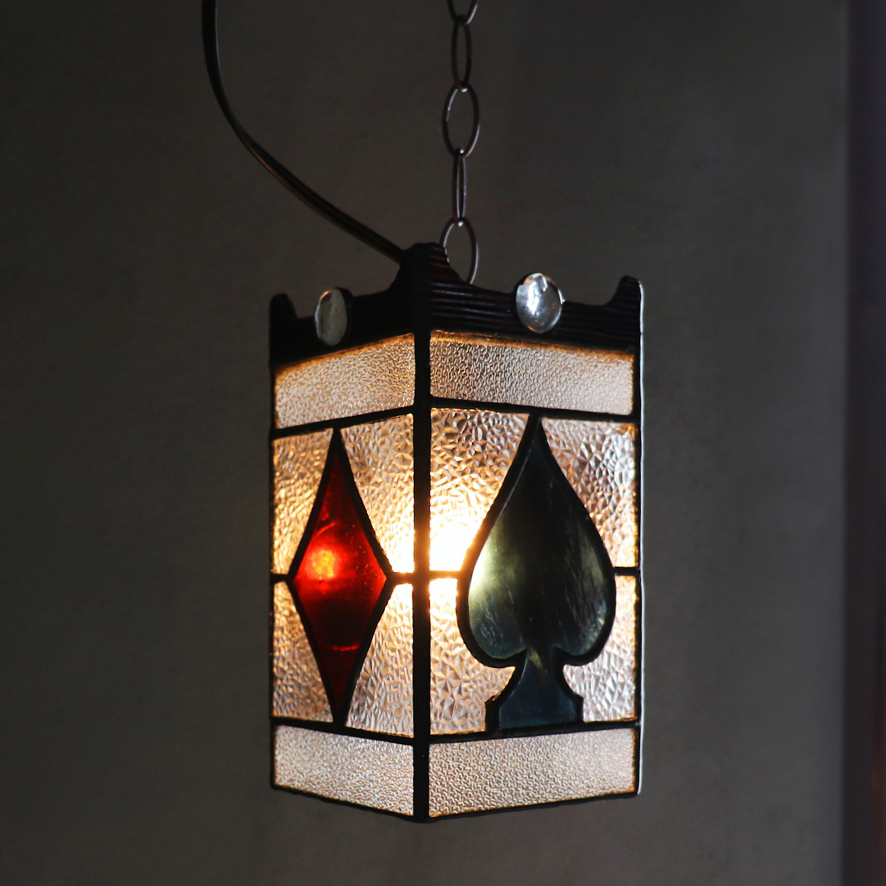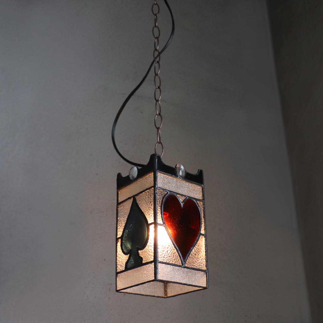 ヴィンテージガラス製ステンドグラスペンダントライト・トランプ柄|天井吊下げ照明ハート・ダイヤ・スペード・クラブ [WPL-25-004]