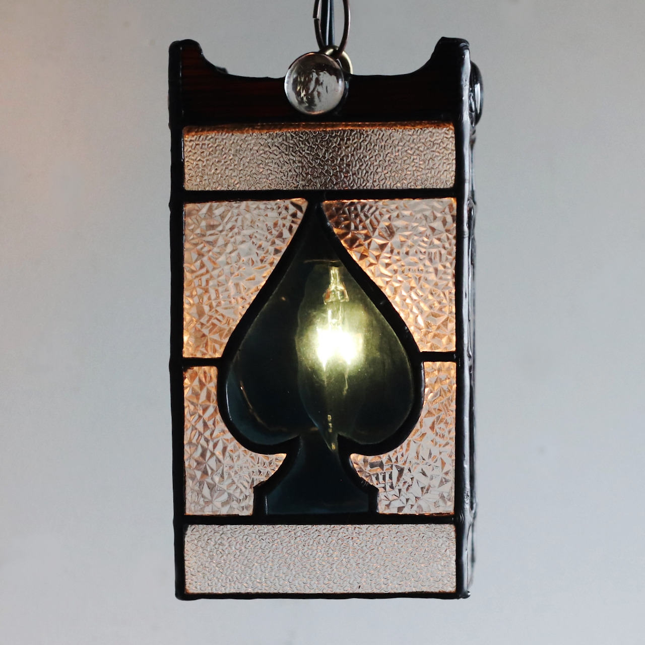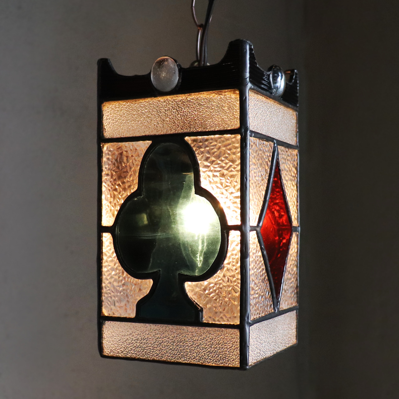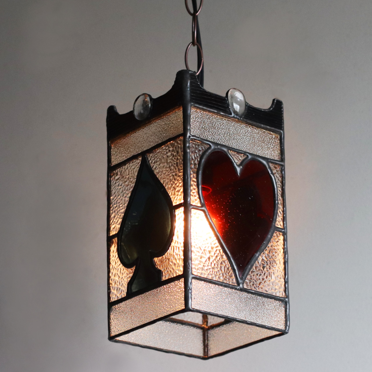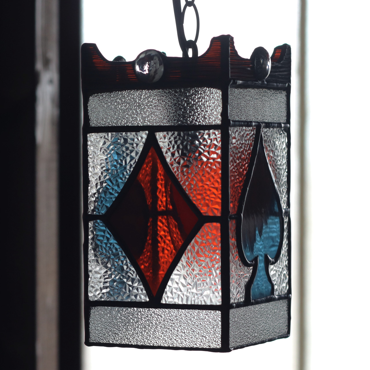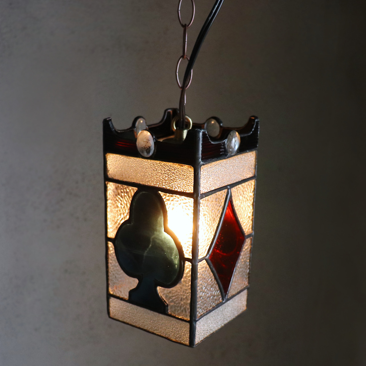 ヴィンテージガラス製ステンドグラスペンダントライト・トランプ柄|天井吊下げ照明ハート・ダイヤ・スペード・クラブ [WPL-25-004]