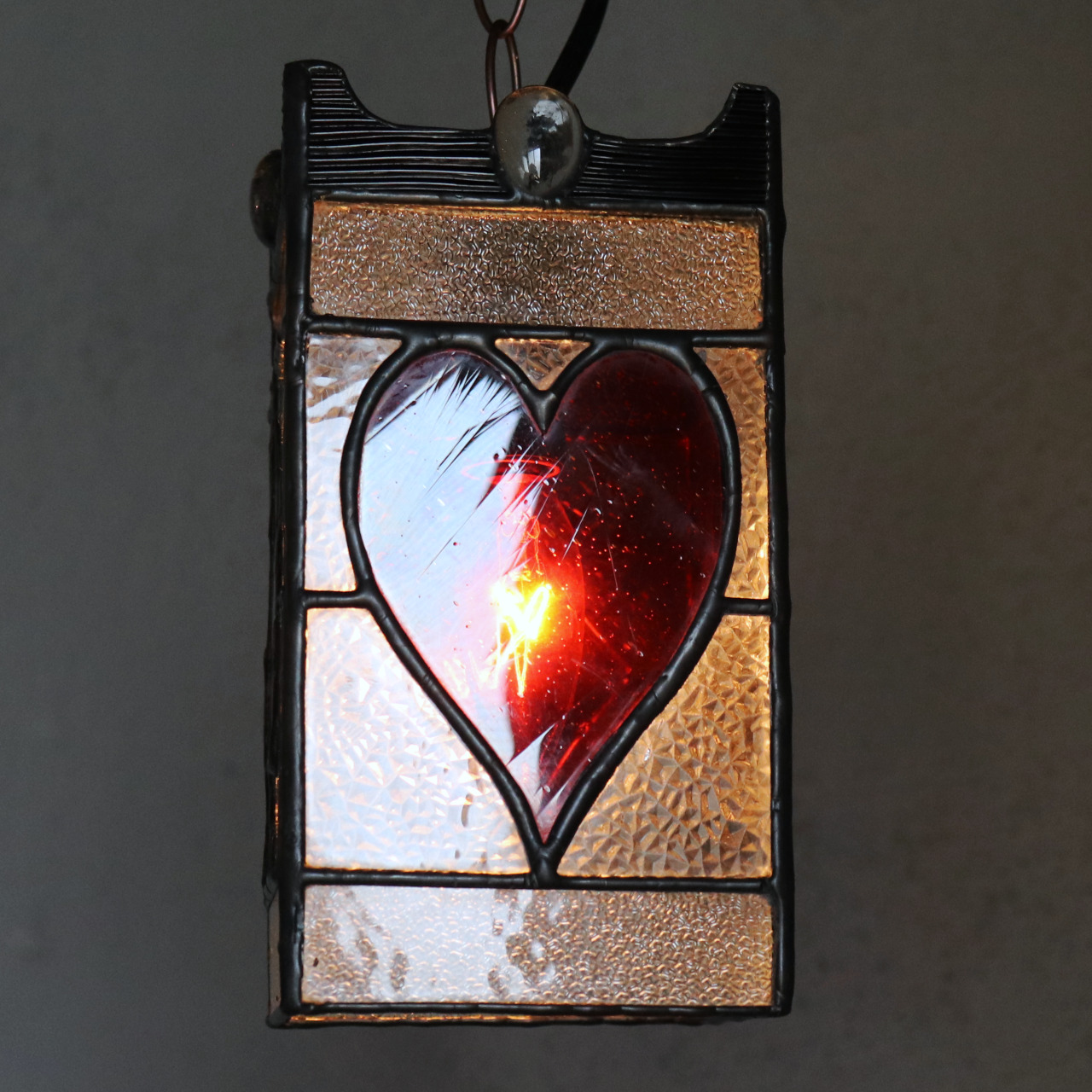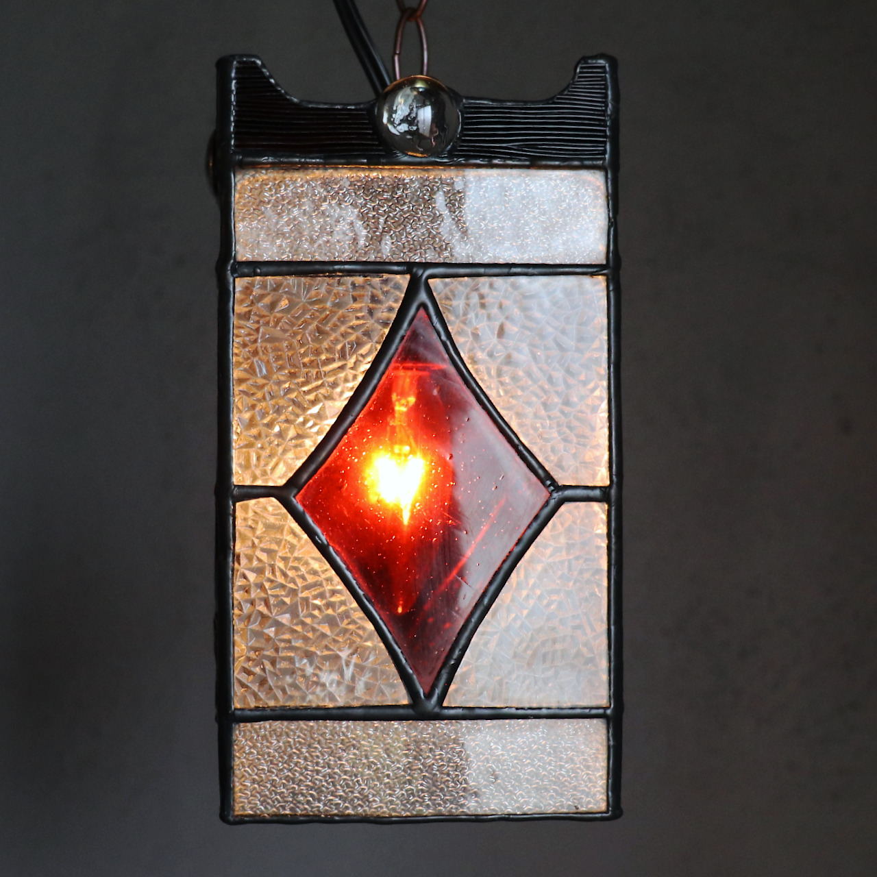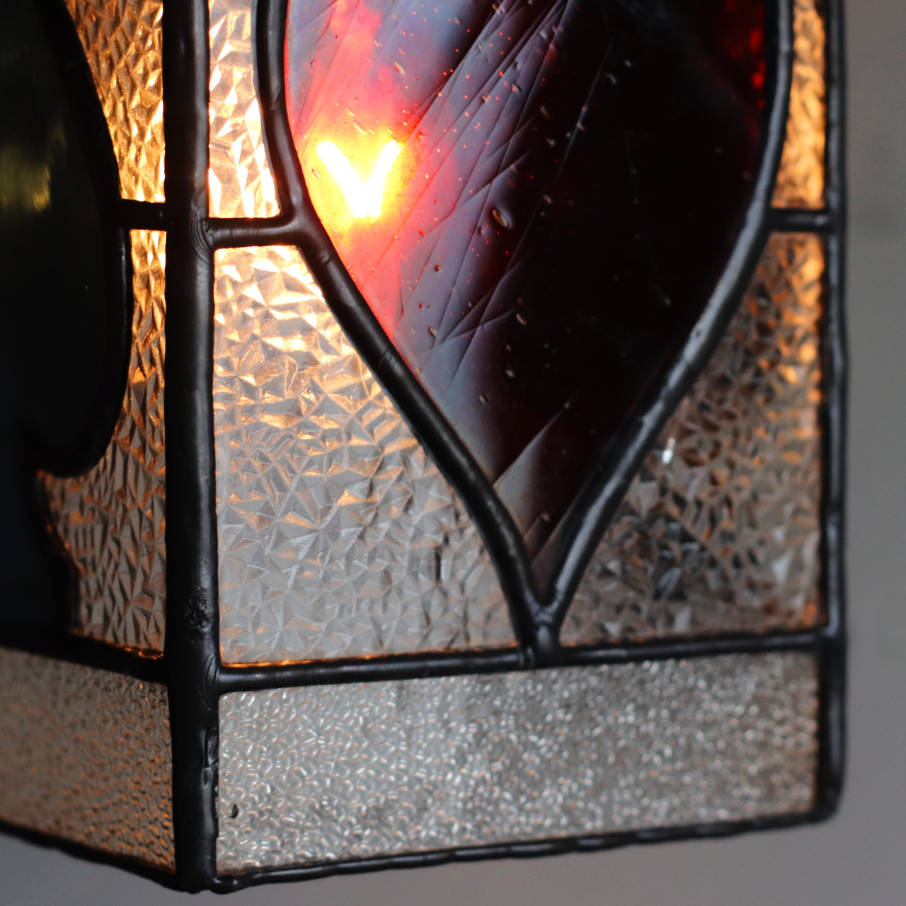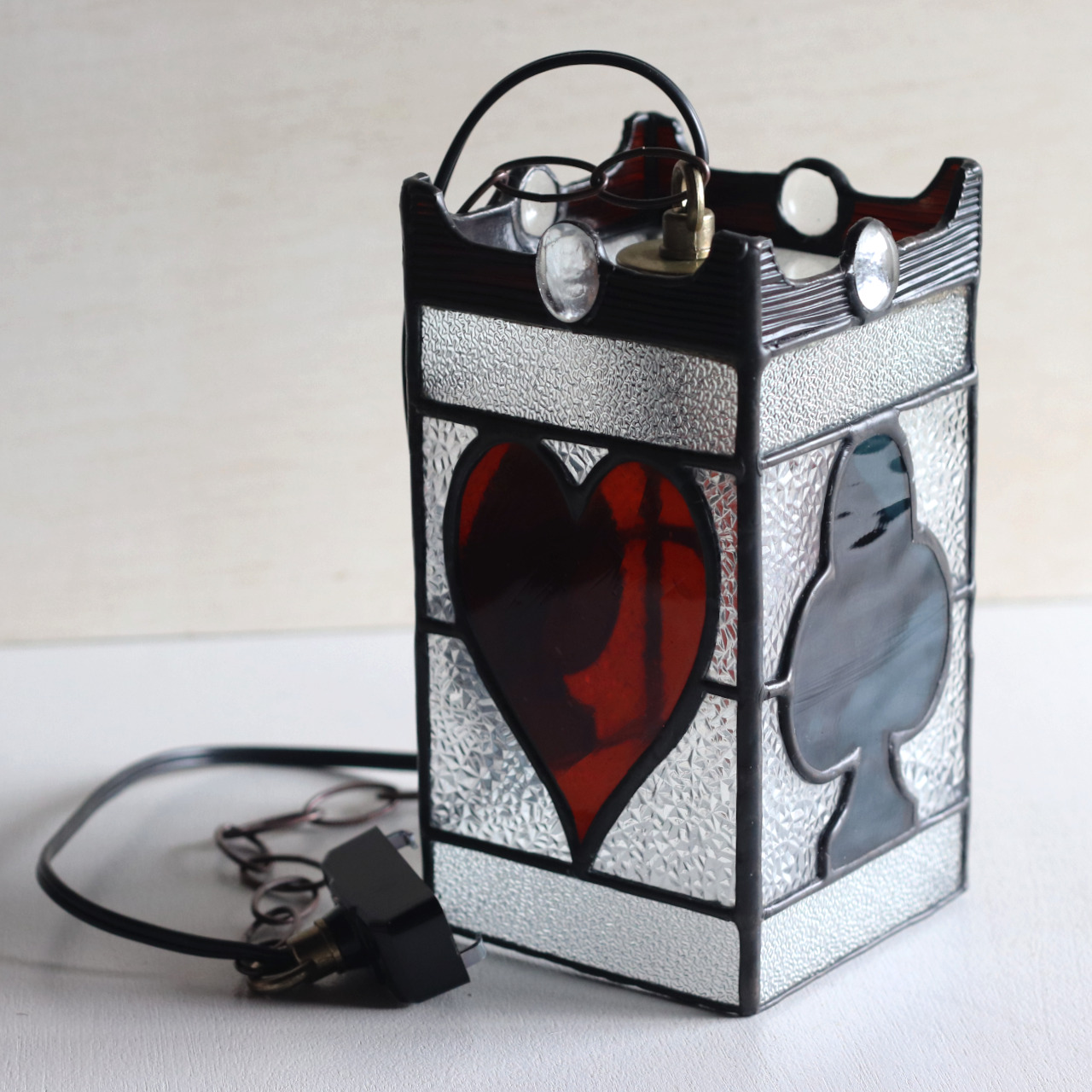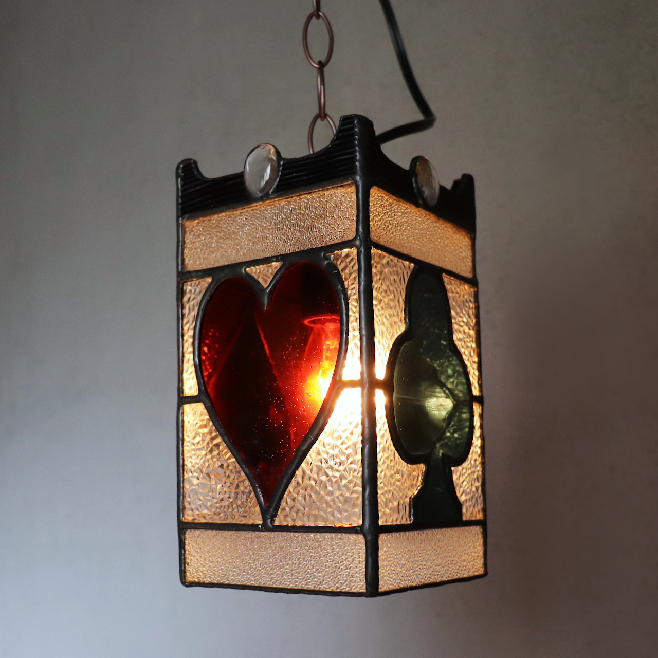 ヴィンテージガラス製ステンドグラスペンダントライト・トランプ柄|天井吊下げ照明ハート・ダイヤ・スペード・クラブ [WPL-25-004]