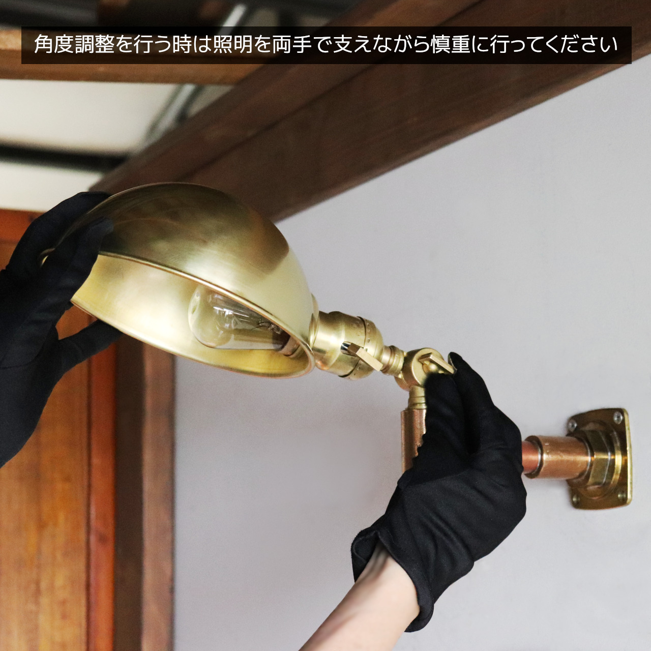 真鍮と銅で構成された照明ですが、表面には塗装を施していないため使用する中でじっくりとくすみます。輝きを取り戻したい場合は真鍮専用のクリーナーで丁寧に磨いて下さい。少しヤレたシャビーな雰囲気がお好みの場合は、日ごろのお手入れを乾拭きに留めてください。