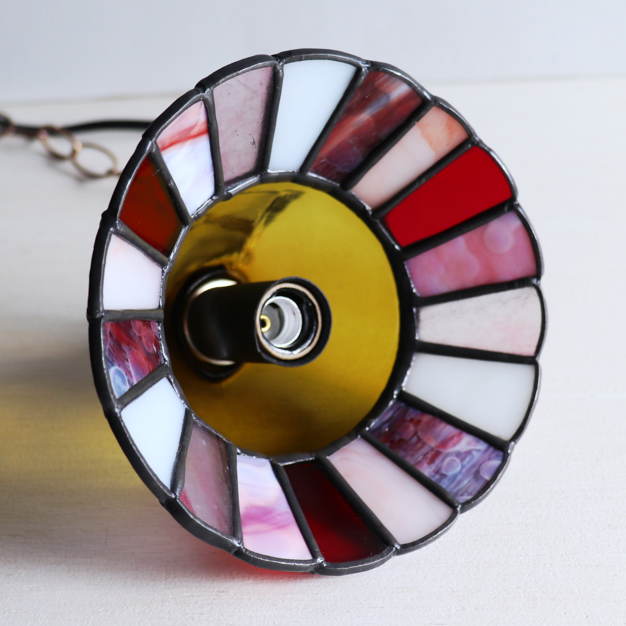 【レッド&ピンク】ステンドグラスミニペンダントライト花型|吊下げ照明・天井照明 [WPL-25-007]