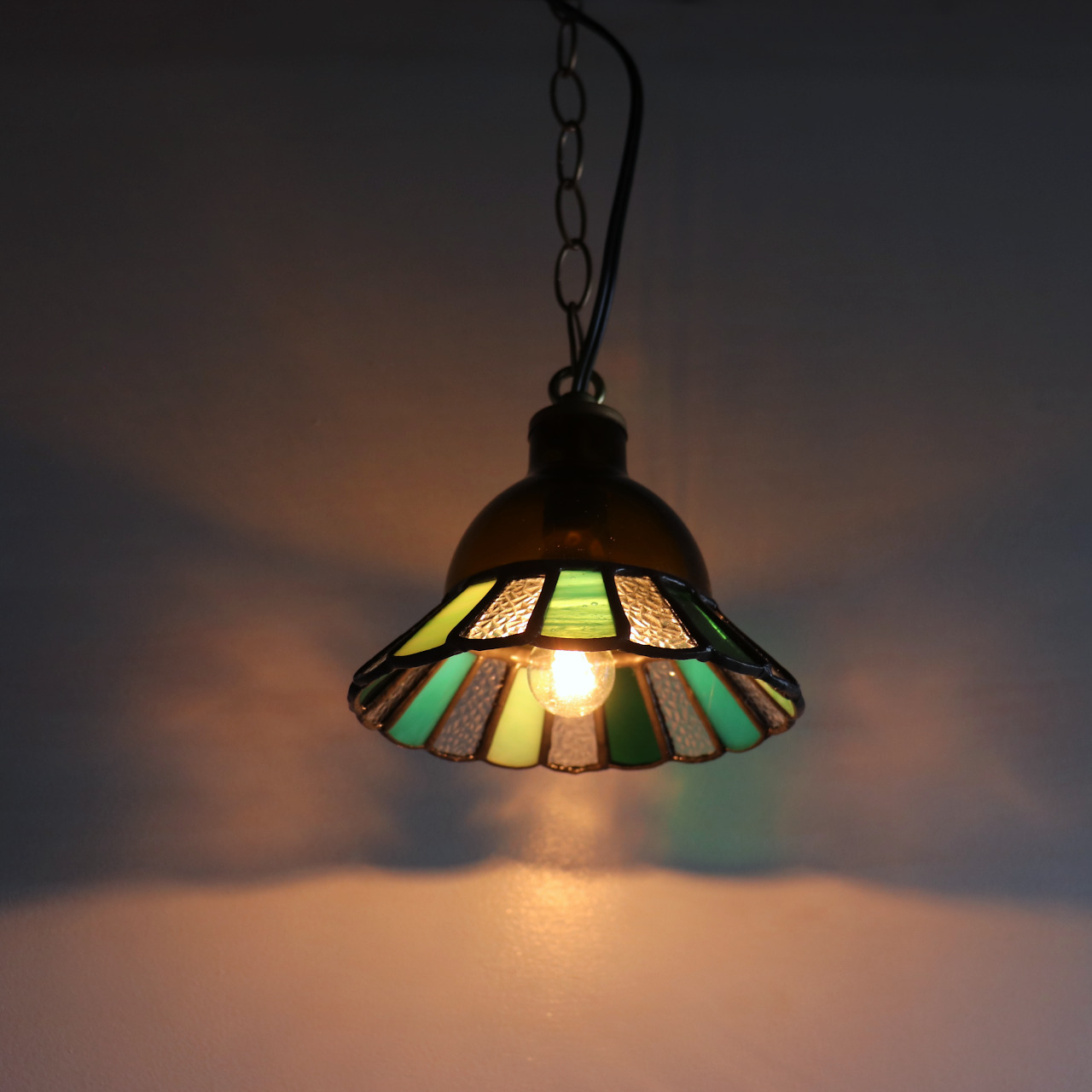 【グリーン】ステンドグラスミニペンダントライト花型|吊下げ照明・天井照明 [WPL-25-009]