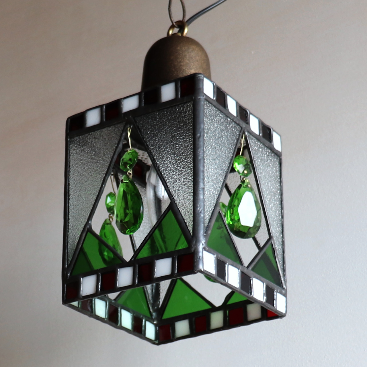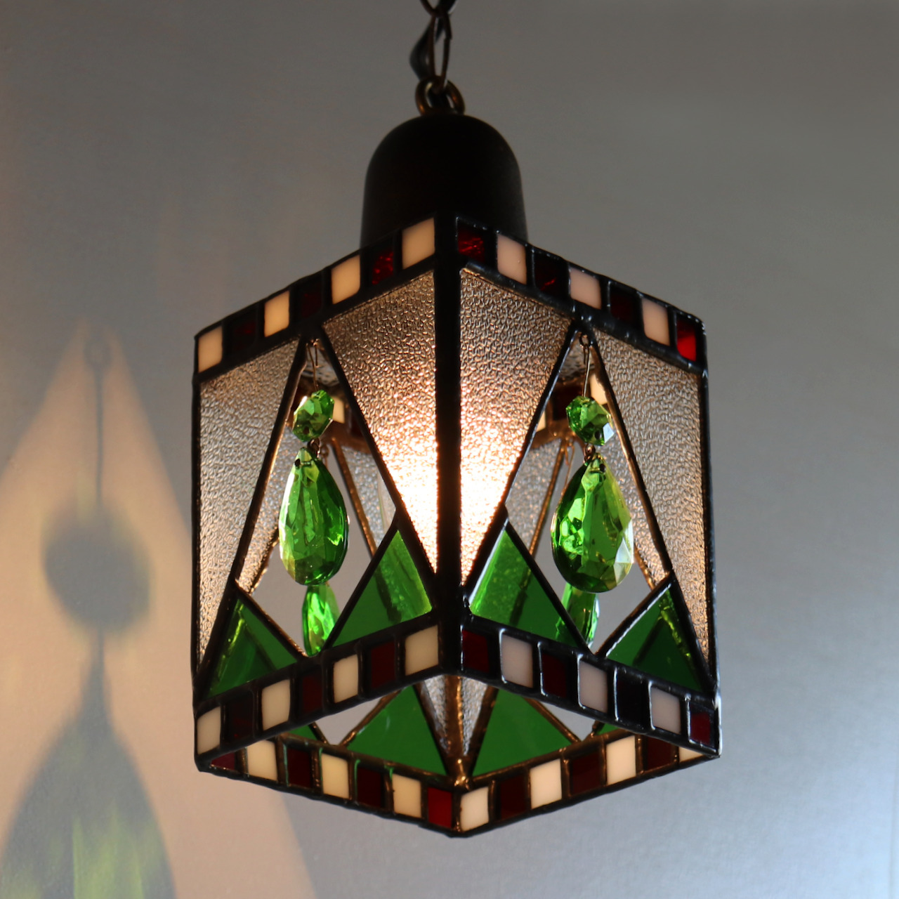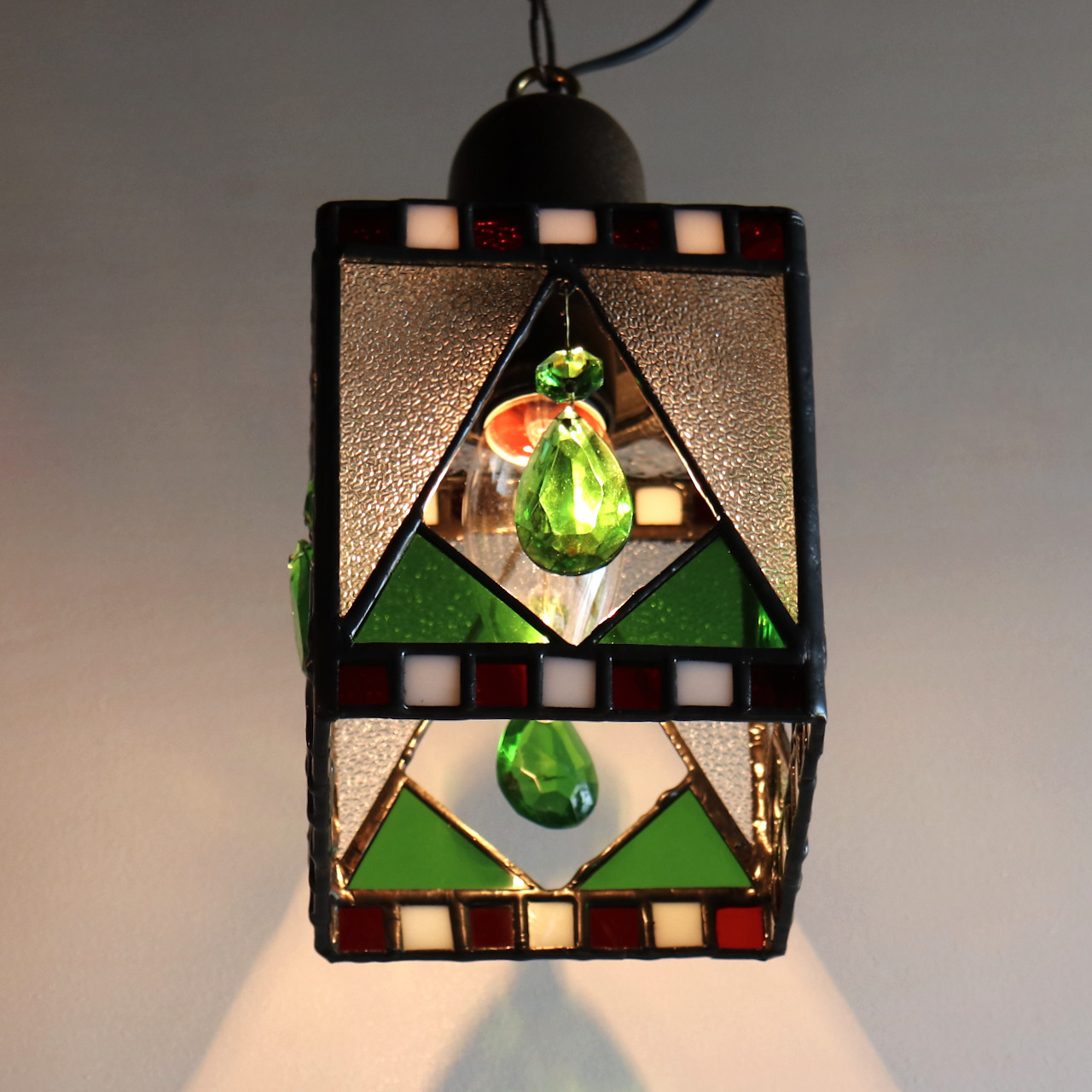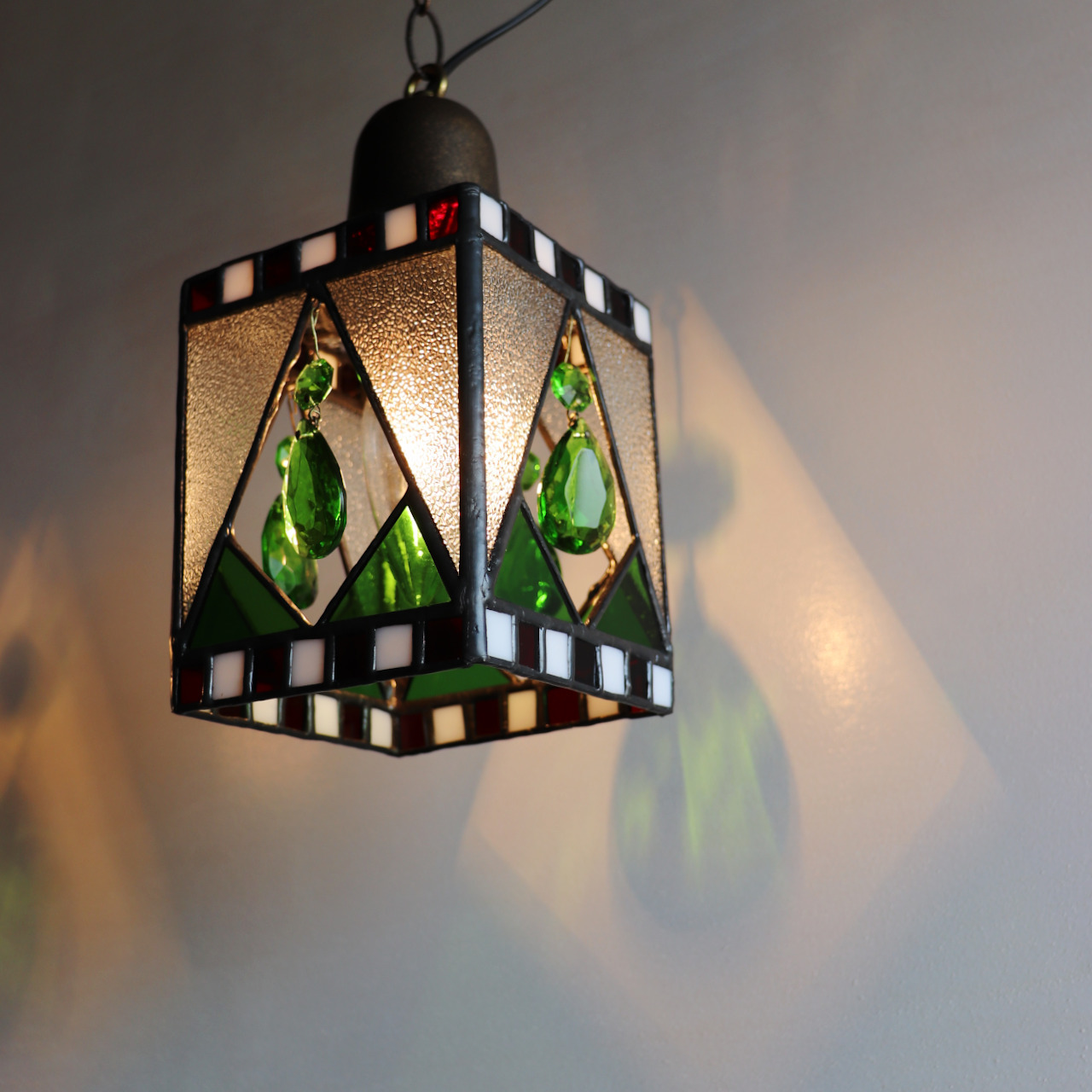クリスマスカラー&ヴィンテージプリズムのステンドグラスペンダントライト|天井吊り下げ照明 [WPL-25-010]