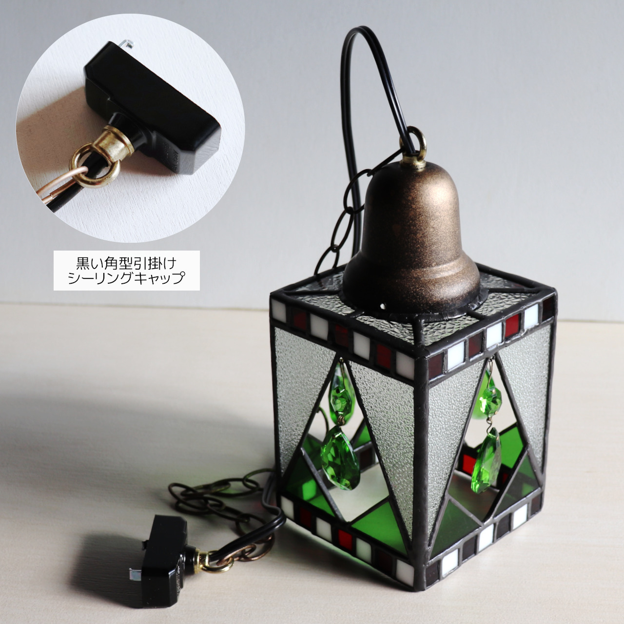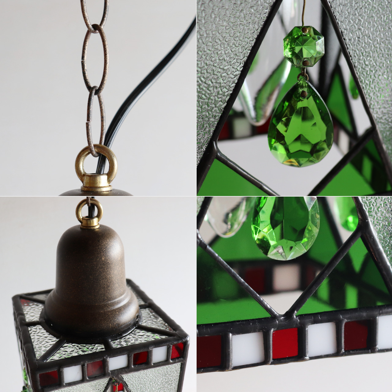 | 商品名 | クリスマスカラー&ヴィンテージプリズムのステンドグラスペンダントライト|天井吊り下げ照明 |