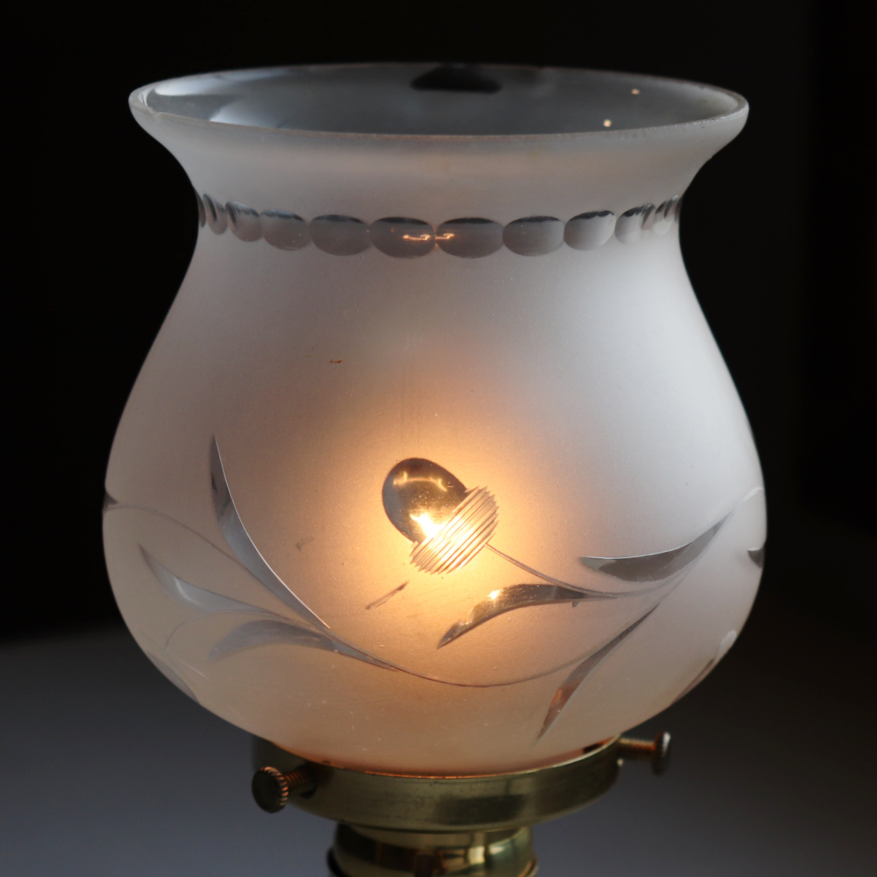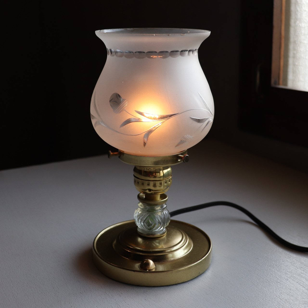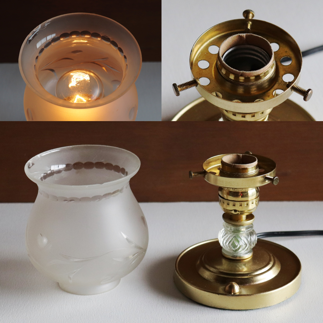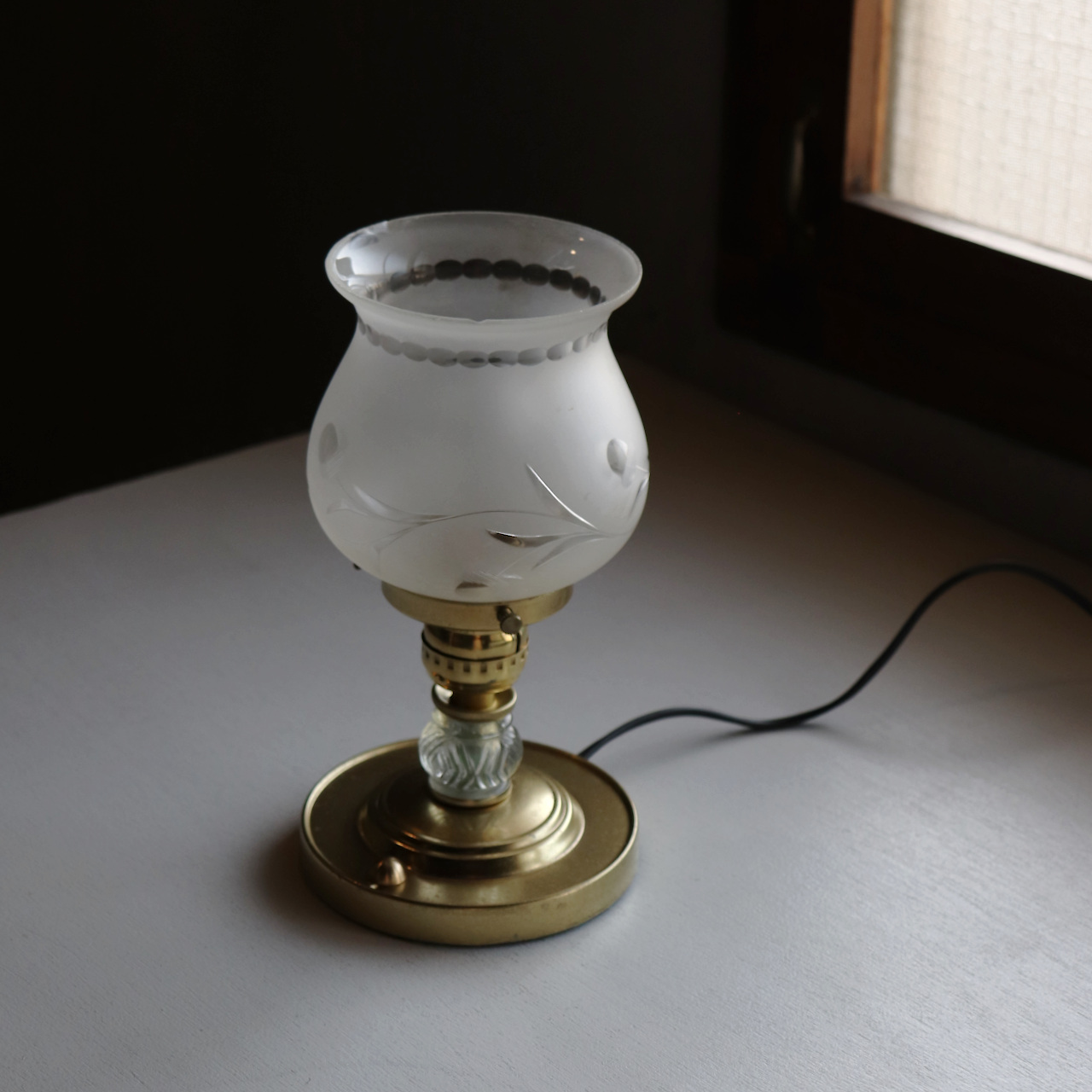 シェードに残る小さな剥離跡もまた、このランプが歩んできた時間の証です。完璧ではないからこそ惹かれる、アンティークや古いもの特有の美しさを感じていただけるはずです。